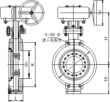 D373H0/16/25/蝸輪傳動(dòng)對夾式硬密封蝶閥主要外形連接尺寸(單位:mm)